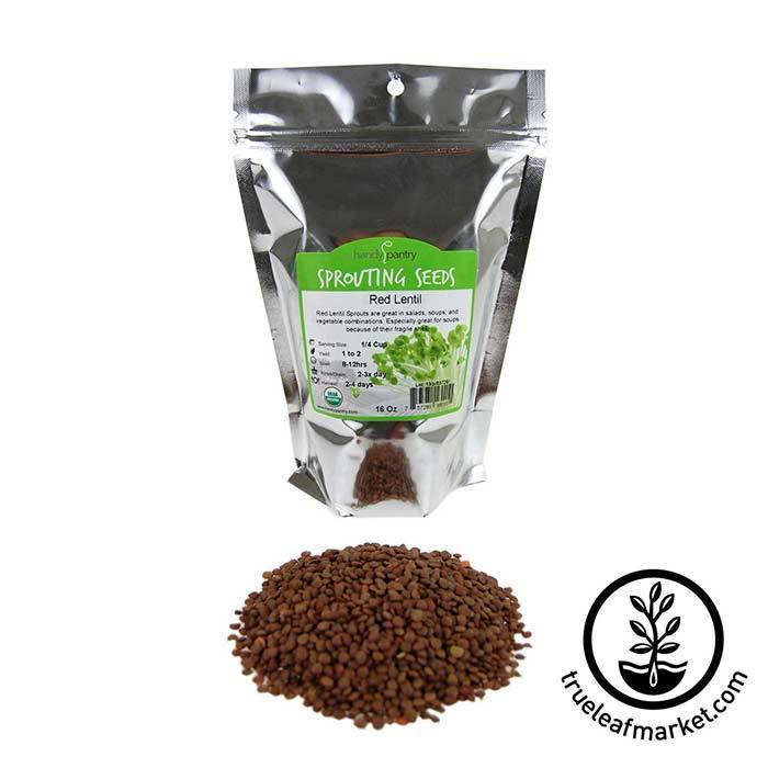 Organic Lentil sprouts are high in fiber, protein and amino acids, vitamins A, C, B complex and E, iron, calcium and phosphorous. Raw organic red lentil sprouts can have a mild peppery flavor. Organic red lentil sprout seeds make a good substitute for celery or green pepper in salads, soups and vegetable combinations. Red lentils are great in lentil soups, Indian recipes or anywhere you would use lentils.